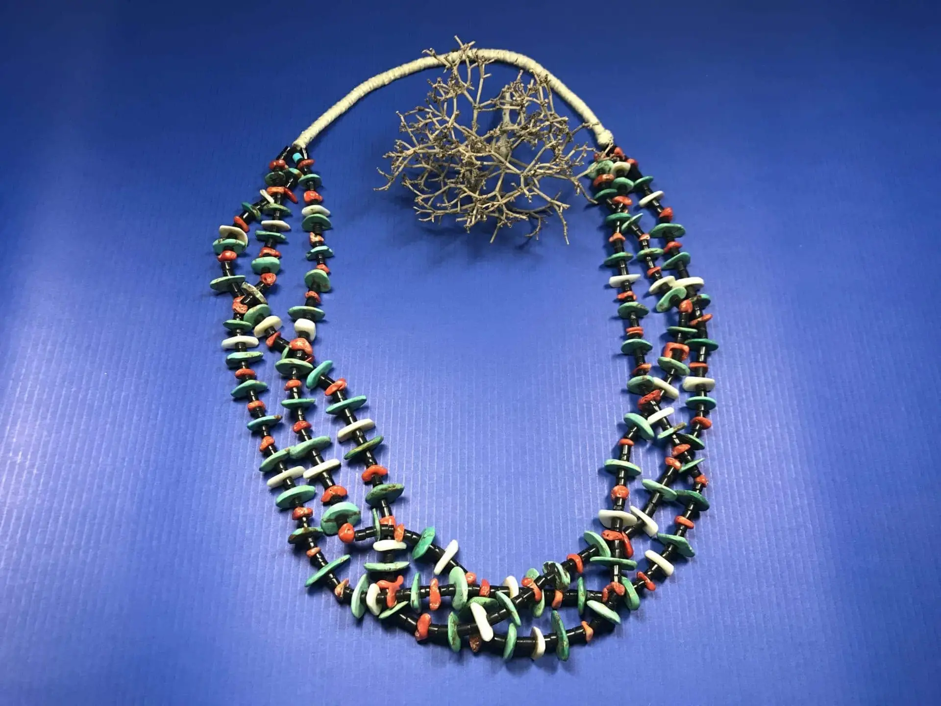 Diese Kette verbindet traditionelle Materialien mit meisterhafter Handwerkskunst und spiegelt die reiche Kultur der Kewa Pueblo wider.