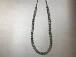 Diese Halskette von Betty Rodriguez kombiniert grünen Türkis mit Olive Shell, was ihr eine natürliche und harmonische Optik verleiht.