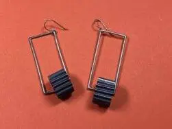 Ohrhänger in Form von Rechtecken aus Silberdraht, in denen lose Kreise aus oxidiertem Silber hängen