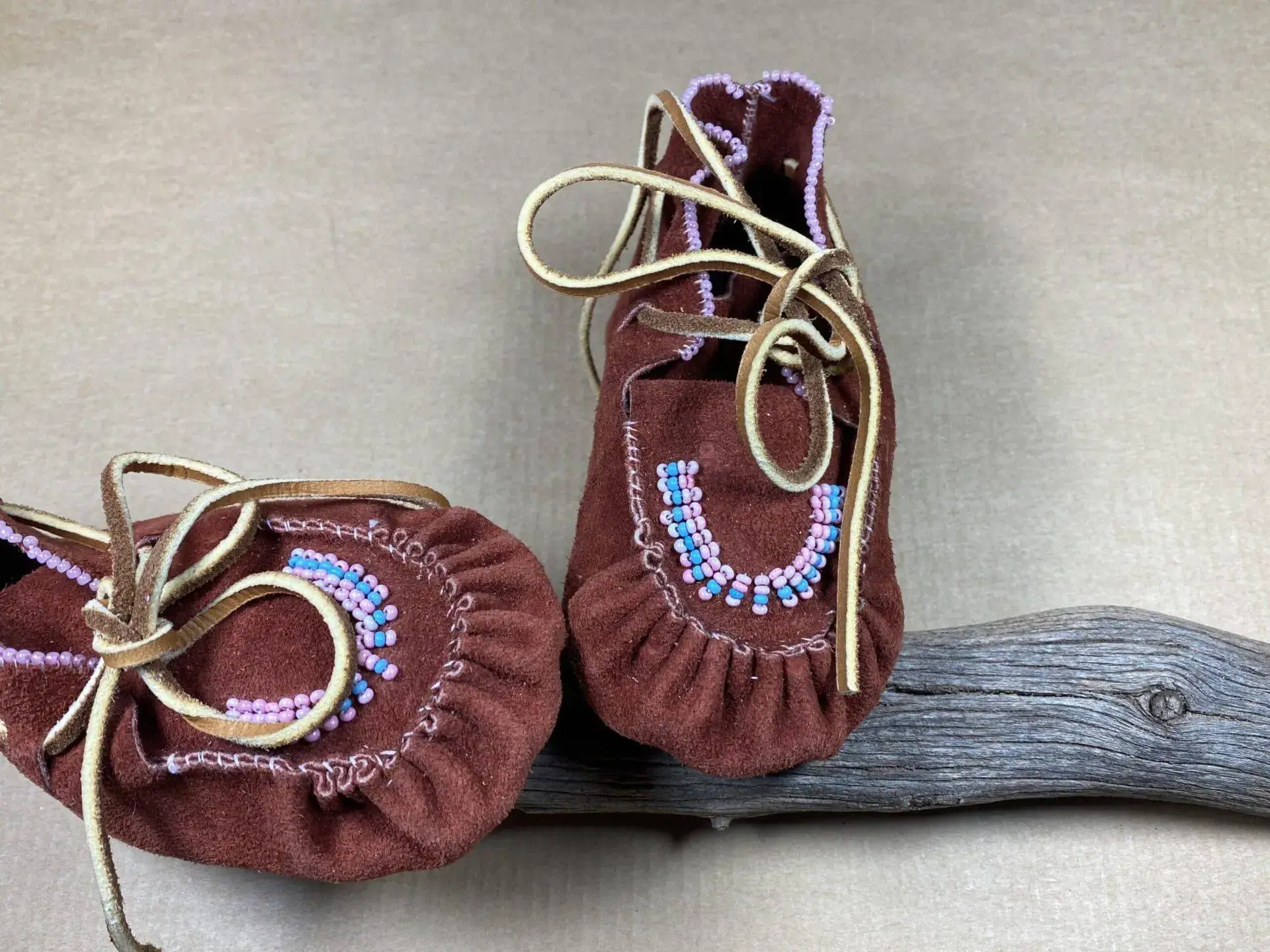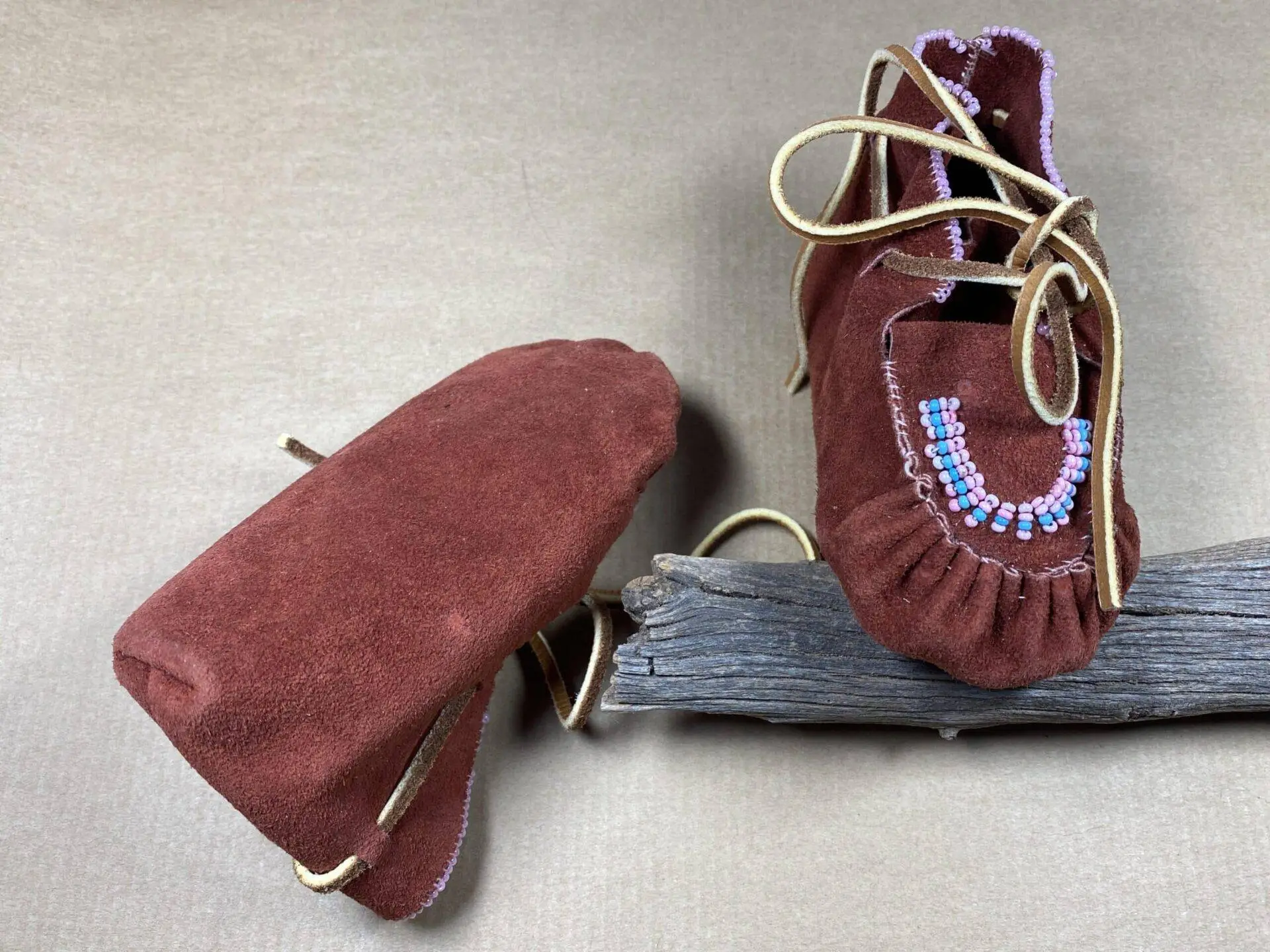 Hohe Babymoccasins aus Wildleder mit Glasperlenstickerei (Beadwork)
