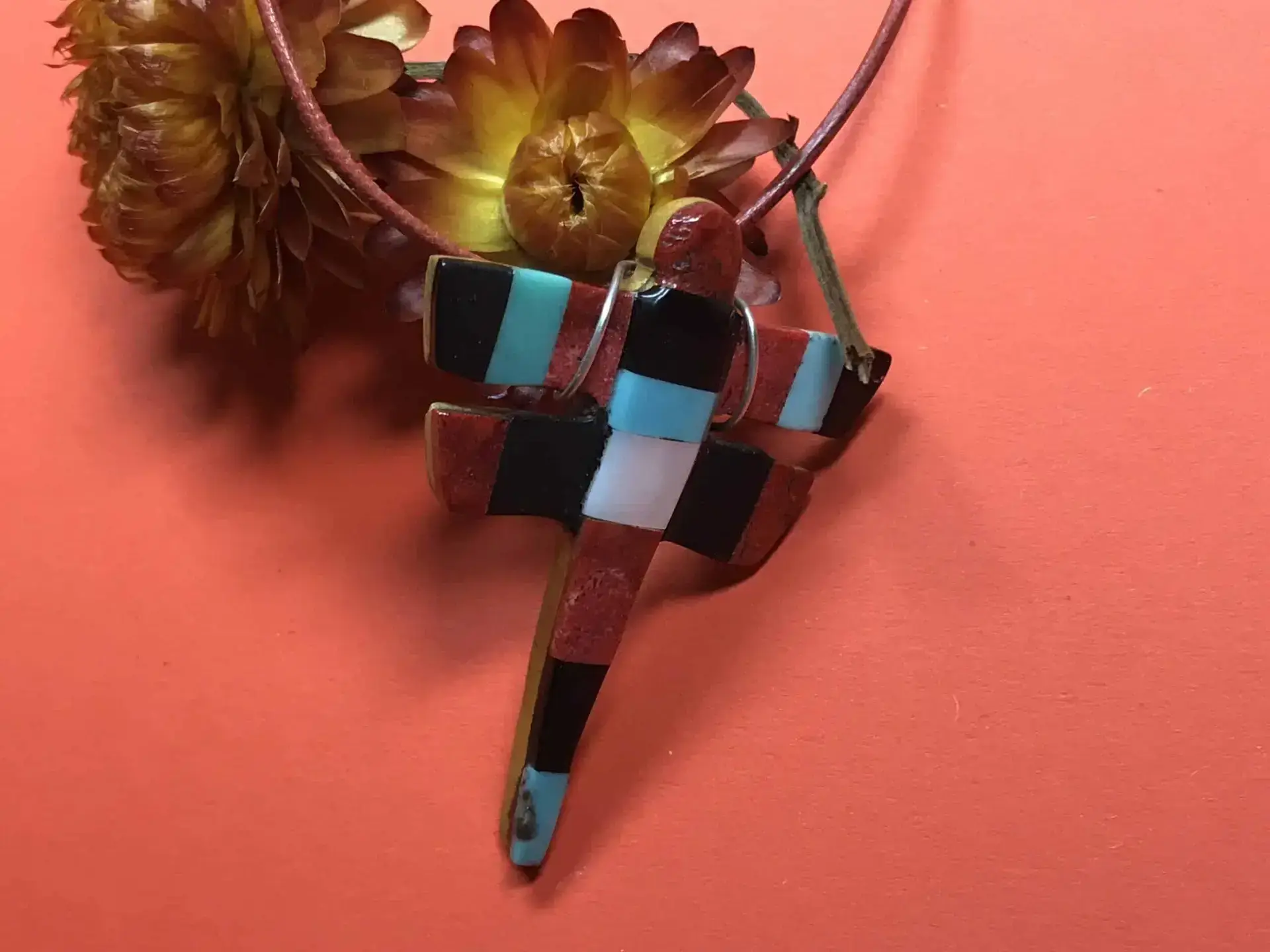 Dieses einzigartige Schmuckstück verbindet die Schönheit natürlicher Materialien mit meisterhafter Handwerkskunst und ist ein stilvolles Accessoire, das gleichzeitig die spirituelle Symbolik der Zuni-Kultur zum Ausdruck bringt.