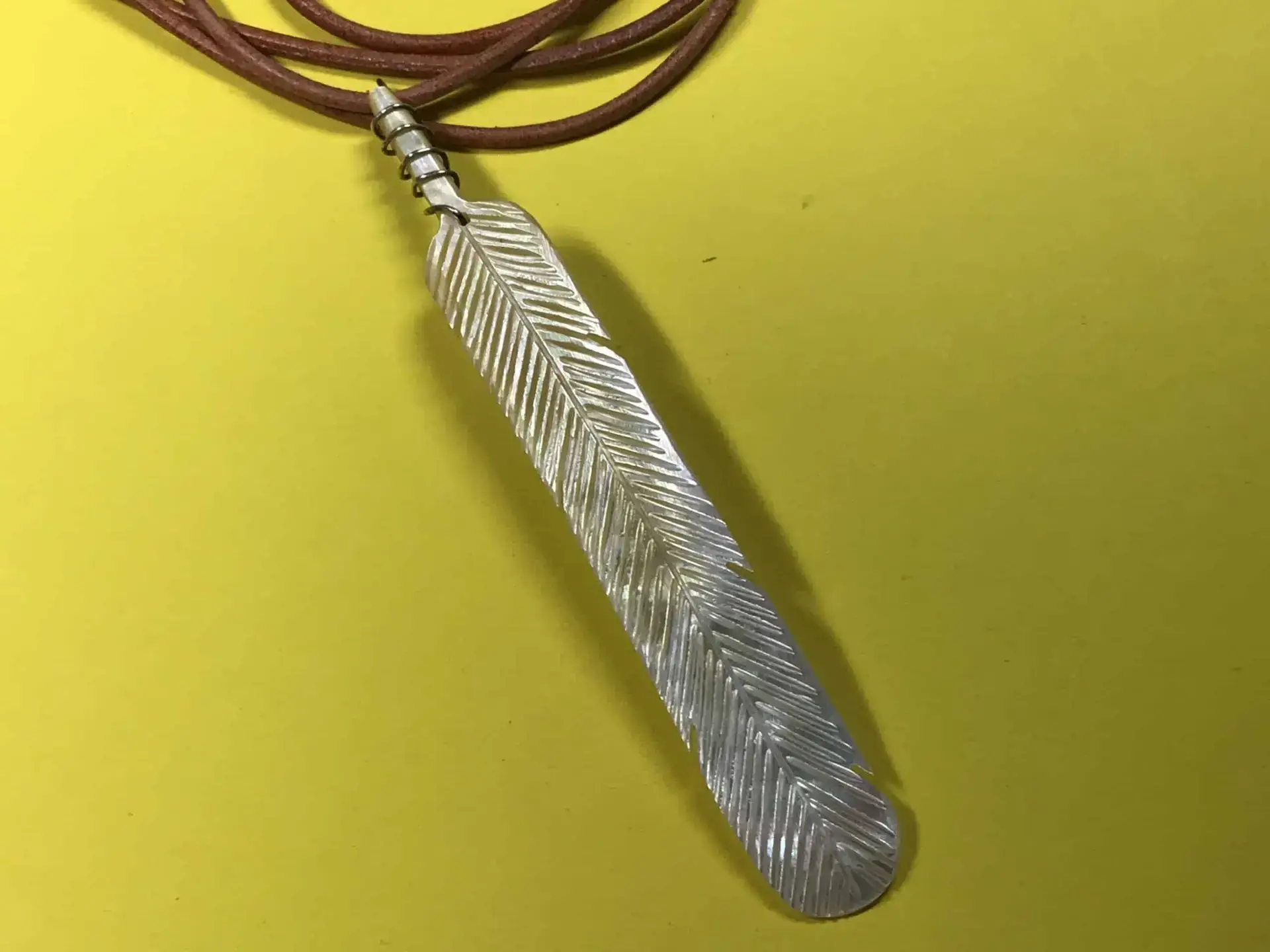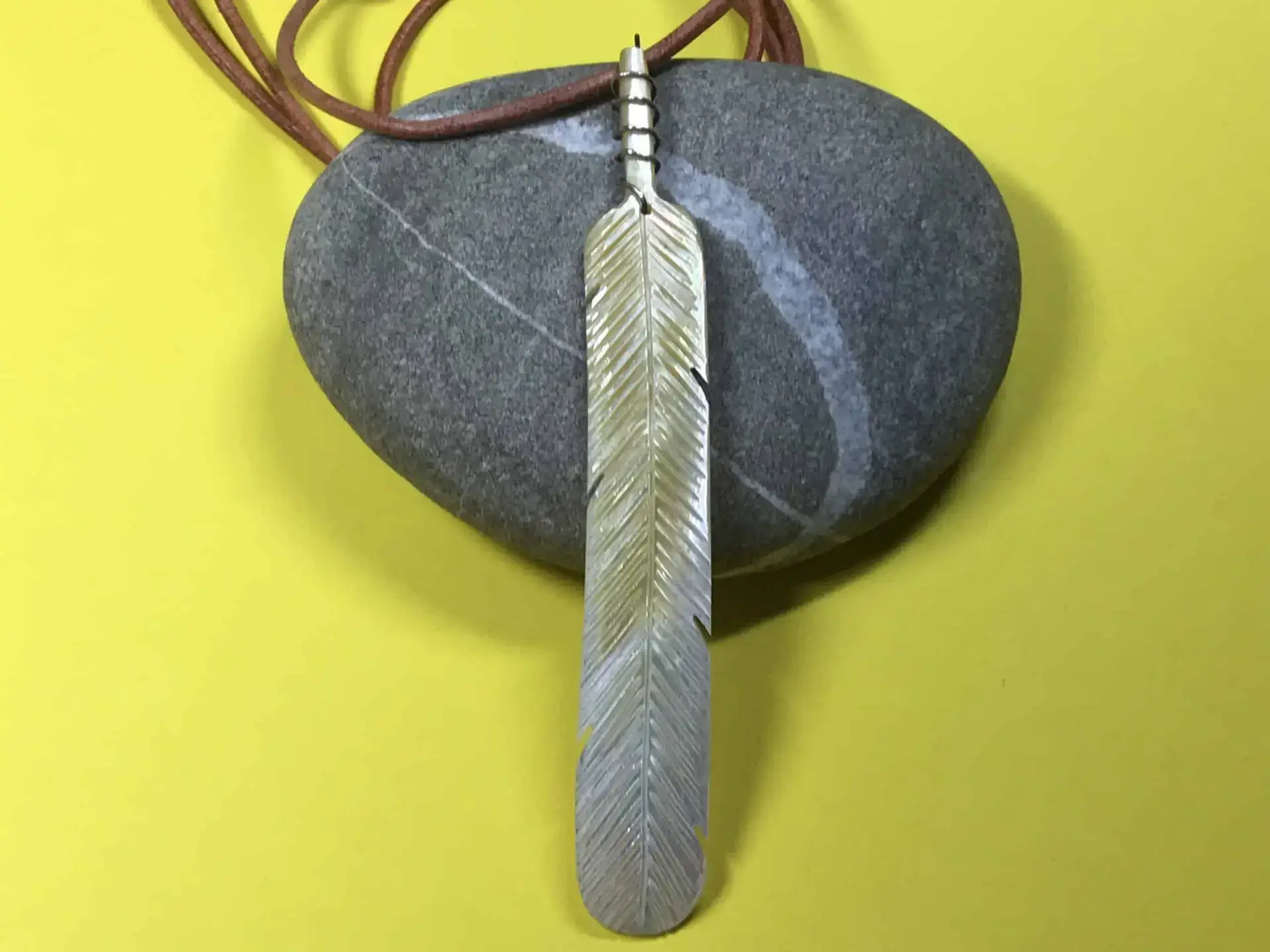 Dieser kunstvoll gestaltete Federanhänger von Bowekaty, einem Silberschmied der Zuni-Indianer, besticht durch seine elegante Form und präzise Handwerkskunst. Der Anhänger, gefertigt aus feinem Perlmutt und in Form einer Feder gestaltet, hat eine beeindruckende Länge von 11 cm (inklusive Öse). Die filigrane Verarbeitung verleiht diesem Schmuckstück eine natürliche Leichtigkeit und spiegelt die tiefe Verbindung der Zuni-Kultur zur Natur wider.