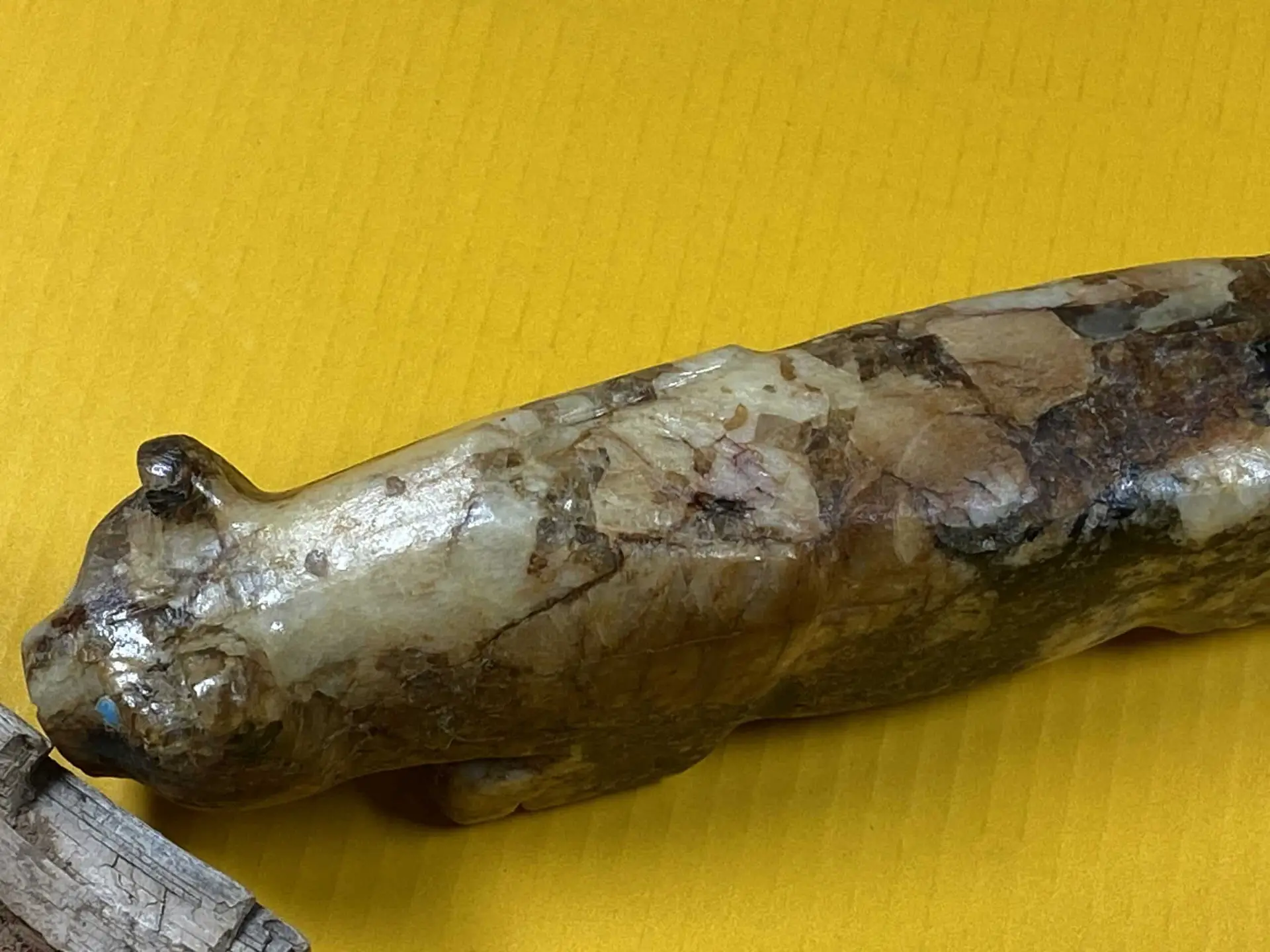 Mit einer Länge von 17 cm zeigt dieser Berglöwe die Balance zwischen Anmut und Stärke, die das Tier in der Natur verkörpert. Die Darstellung in Picasso-Marmor fängt die Details und Formen des Löwen auf eindrucksvolle Weise ein, wodurch die Verbindung zwischen der spirituellen Rolle des Berglöwen und der natürlichen Schönheit des Marmors betont wird. Dieses Kunstwerk ist nicht nur ein Ausdruck handwerklicher Präzision, sondern auch ein tiefes Symbol für Schutz und Führung in der Zuni-Tradition.
