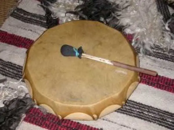 Diese große Handtrommel ist aus Zitterpappelholz gefertigt und mit Pferdehaut und Pferdesehnen bespannt. Mit einem Durchmesser von 43 cm und einer Höhe von 9 cm bietet sie eine tiefe, resonante Klangqualität.