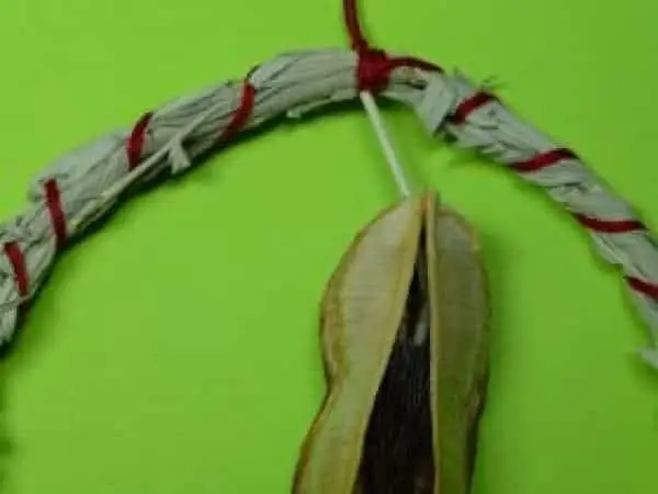 Dieser Hoop von Harley Zephier ist ausschließlich aus natürlichen Materialien gefertigt, darunter Salbei, Pferdehaar, Soapweed-Samen und Stachelschweinborsten.