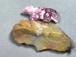 Die Skulptur «Kleiner Wolf», geschaffen von Jeff Yunie (Zuni), ist ein Stone Carving der Zuni aus Spiny Oyster, einem Material, das in New Mexico gewonnen wird. Die Besonderheit dieser Skulptur liegt in ihrer Dualität: Eine Seite des Wolfs ist violett geprägt, während die andere Seite weiß ist.