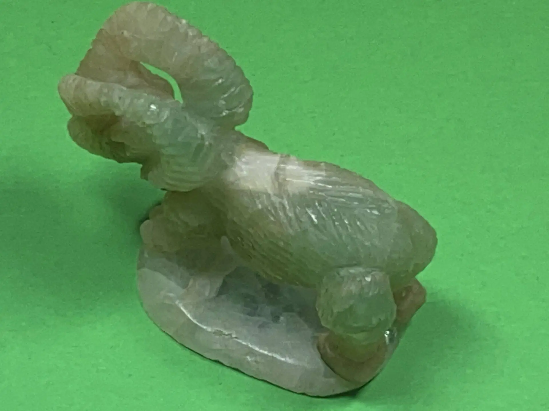 Die Farben des Fluorits verschmelzen harmonisch und erzeugen ein faszinierendes Farbspiel, das das Licht auf eine einzigartige Weise einfängt und reflektiert. Von sanften Grüntönen über violette Nuancen bis hin zu tiefen Blau- und Lavendeltönen – das Bighorn-Schaf aus Fluorit strahlt in einer Palette, die die Vielfalt der Natur widerspiegelt.