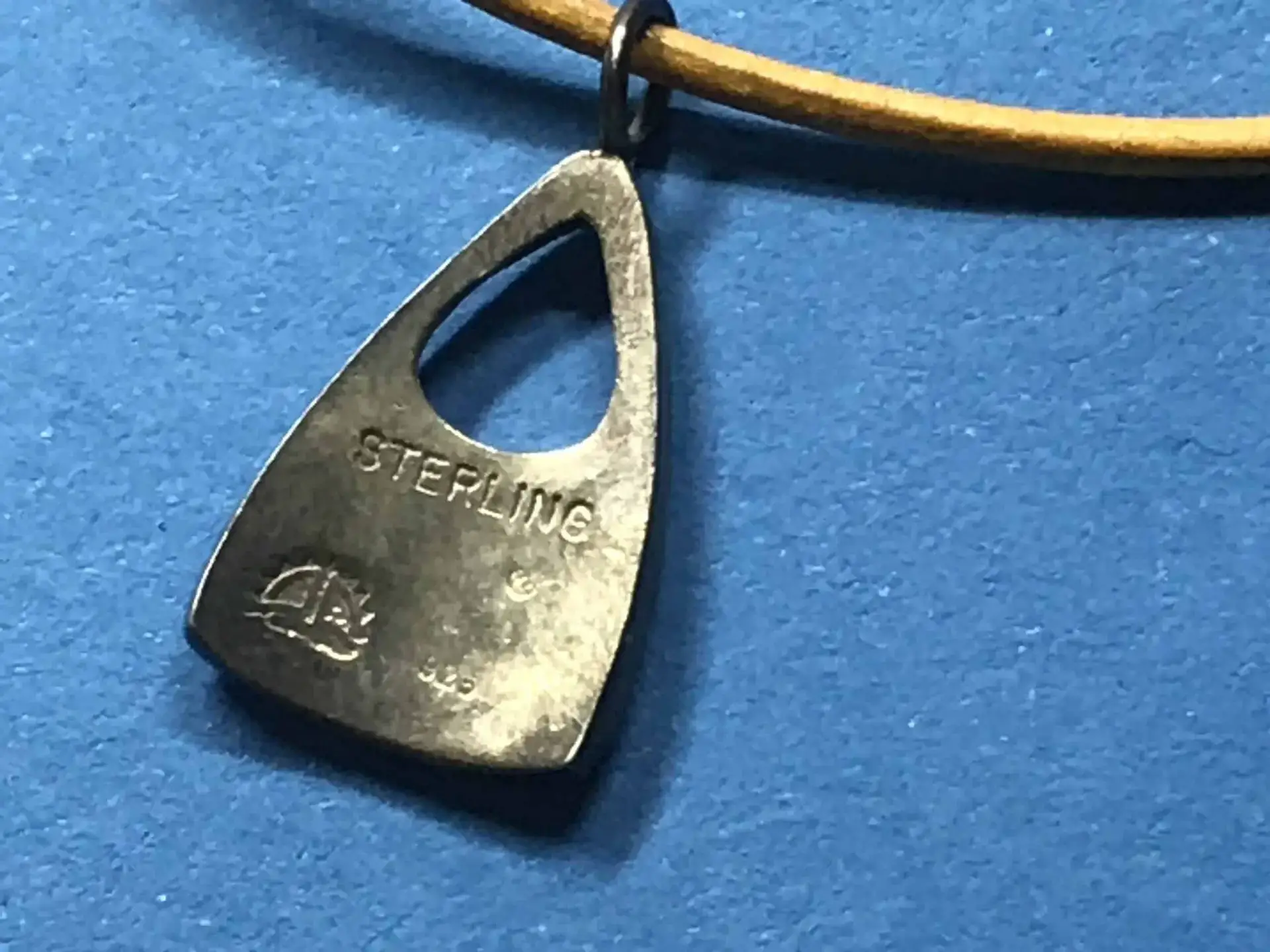 Overlay-Anhänger aus Sterlingsilber mit Symbolen der Hopi in Overlay-Technik.