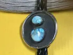 Kreisrunde Bolo Tie aus Sterlingsilber mit zwei blauen Türkissteinen