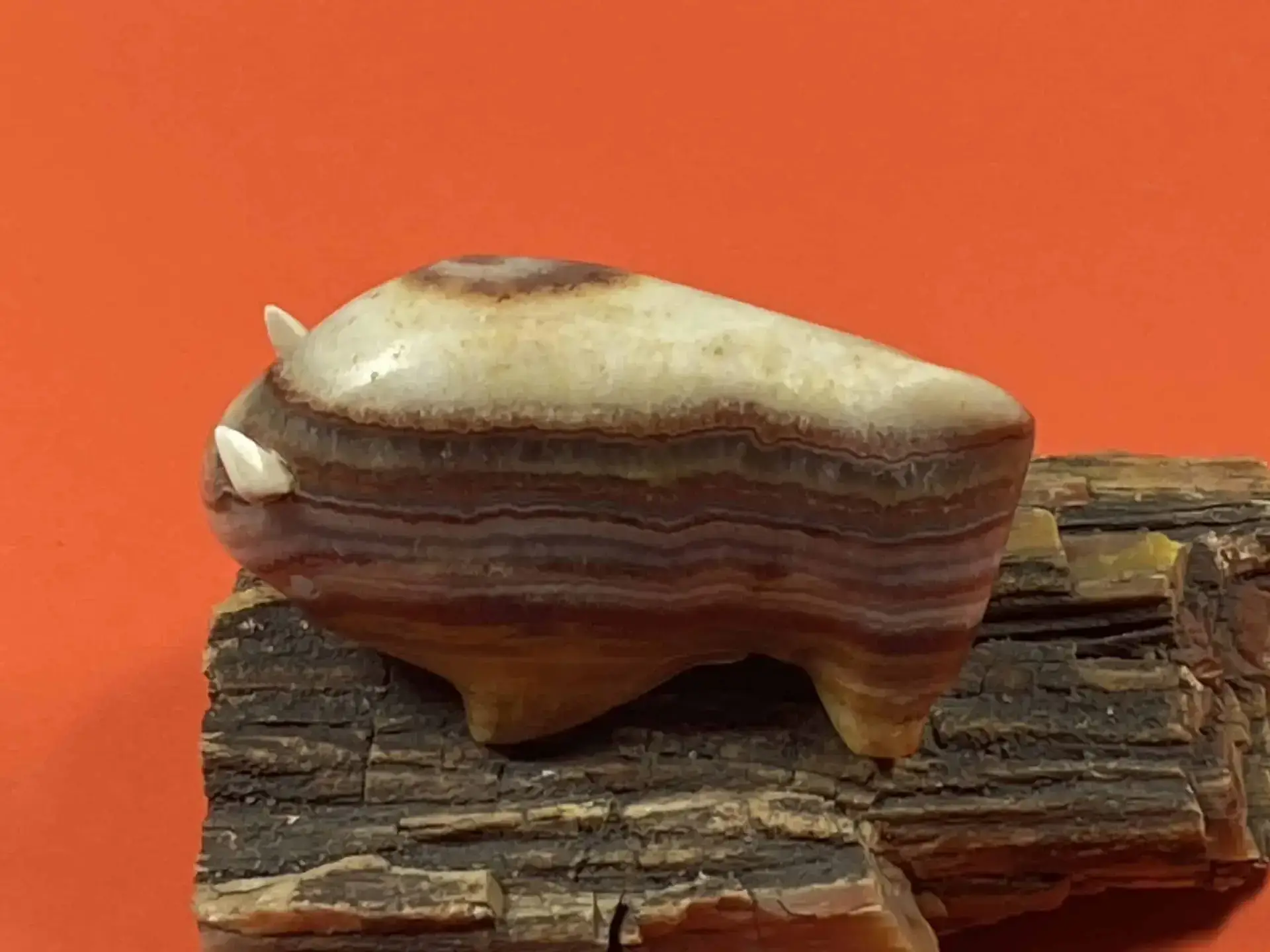 Die Büffelfigur misst 7 cm in der Länge und repräsentiert in der Zuni-Kultur Stärke, Schutz und Fülle.