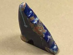 Lynn Quam, ein Künstler der Zuni, hat sein aussergewöhnliches handwerkliches Können in der Schaffung einer beeindruckenden Figur unter Beweis gestellt – einem heulenden, sitzenden Wolf. Dieses Meisterwerk wurde sorgfältig aus Sodalit geformt, einem reichhaltigen blauen Stein, der für seine beruhigenden und heilenden Eigenschaften bekannt ist. Der Wolf, der in der Kultur der Zuni eine tiefe symbolische Bedeutung hat, wird als kraftvolles Symbol für Intelligenz, Freiheit und soziale Verbindung betrachtet.