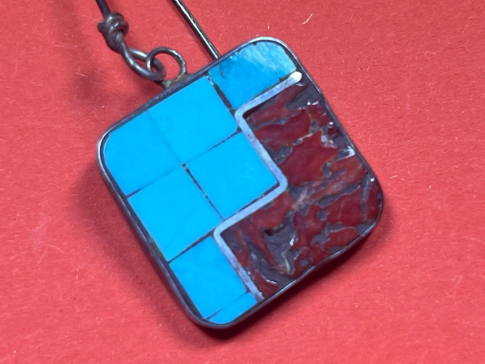 Silberrahmen aus Sterlingsilber auf Serpentine mit einem Inlay aus Türkis und Korallen