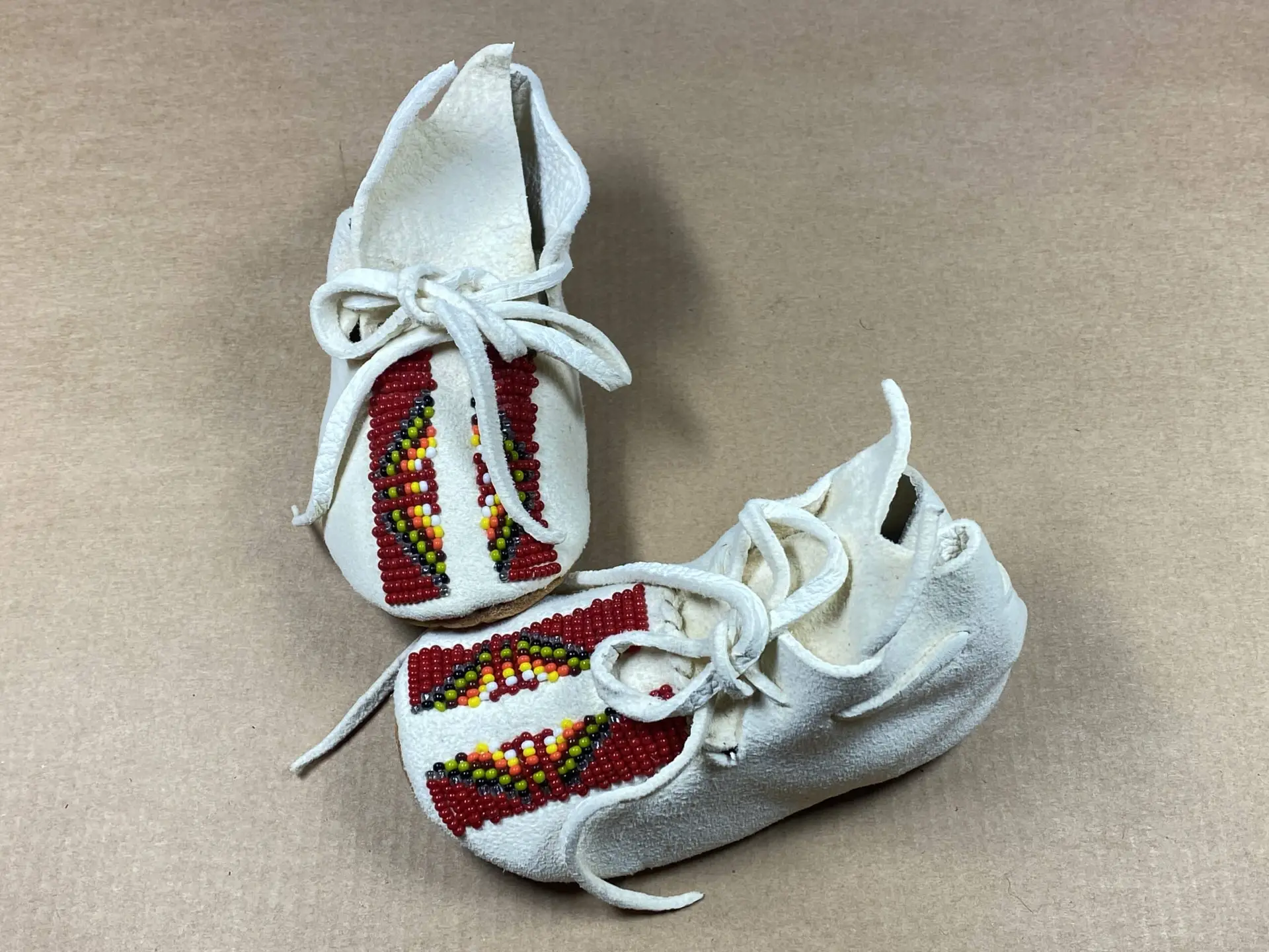 Mit einer Länge von 12,4 cm sind diese Babymokassins nicht nur ein Zeichen des Schutzes und der Sorge um die jüngsten Mitglieder der Gemeinschaft, sondern auch ein Kunstwerk, das die Bedeutung von Tradition und Handwerkskunst verkörpert.