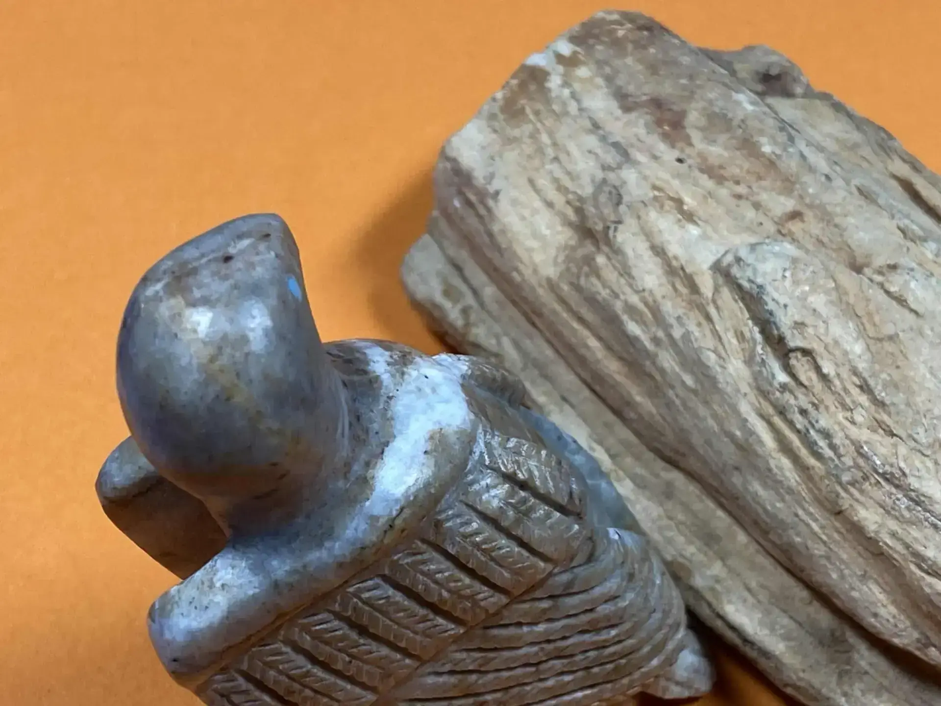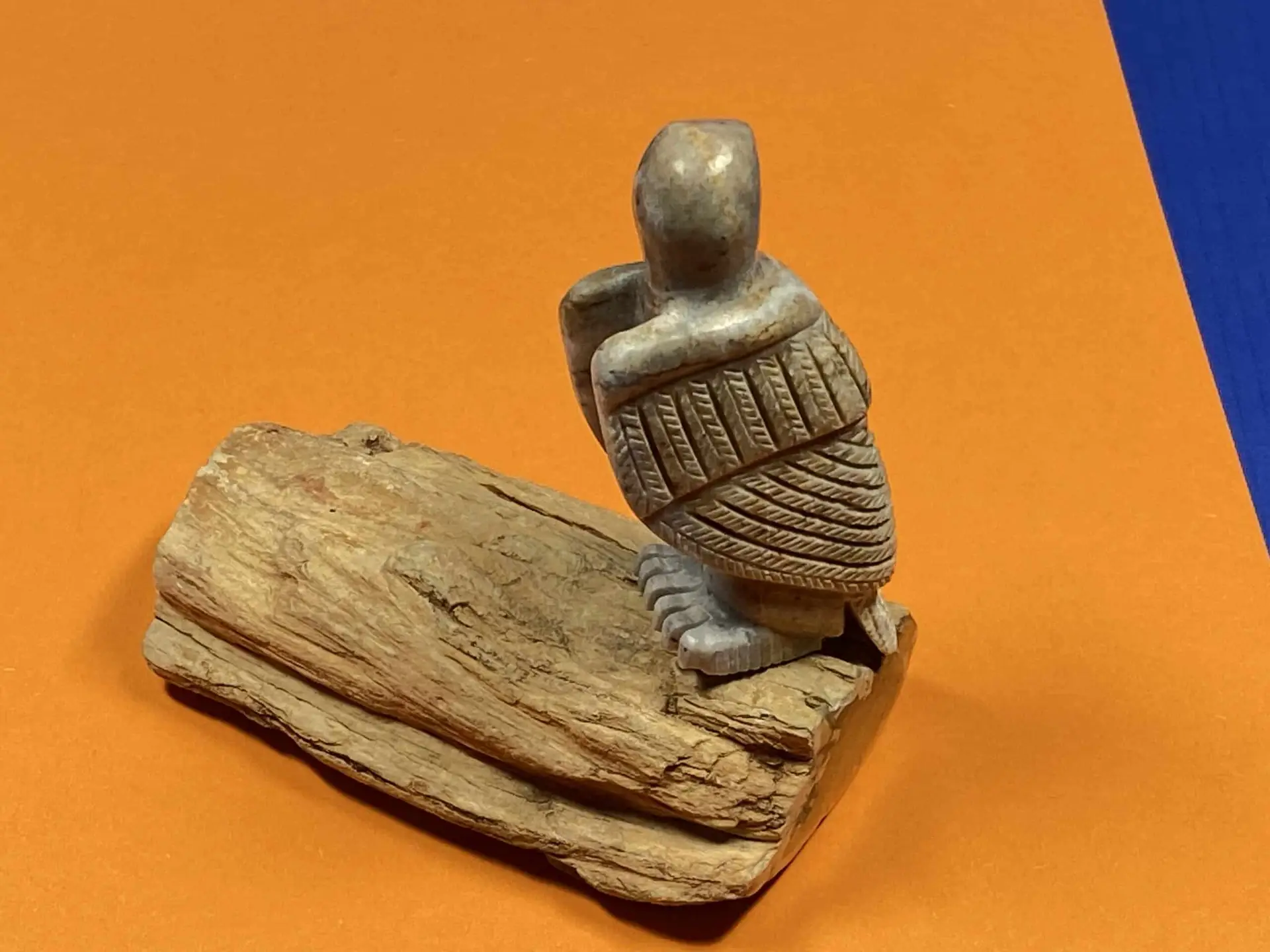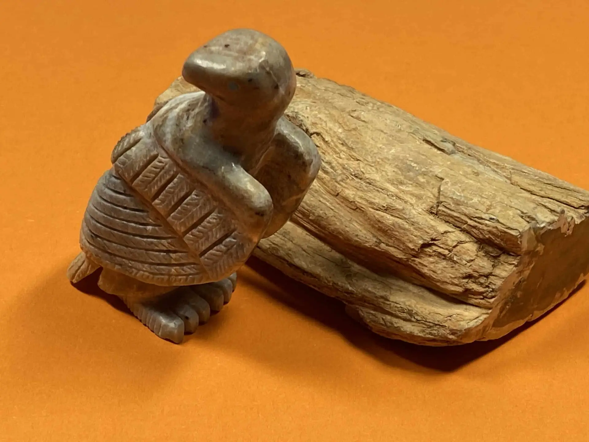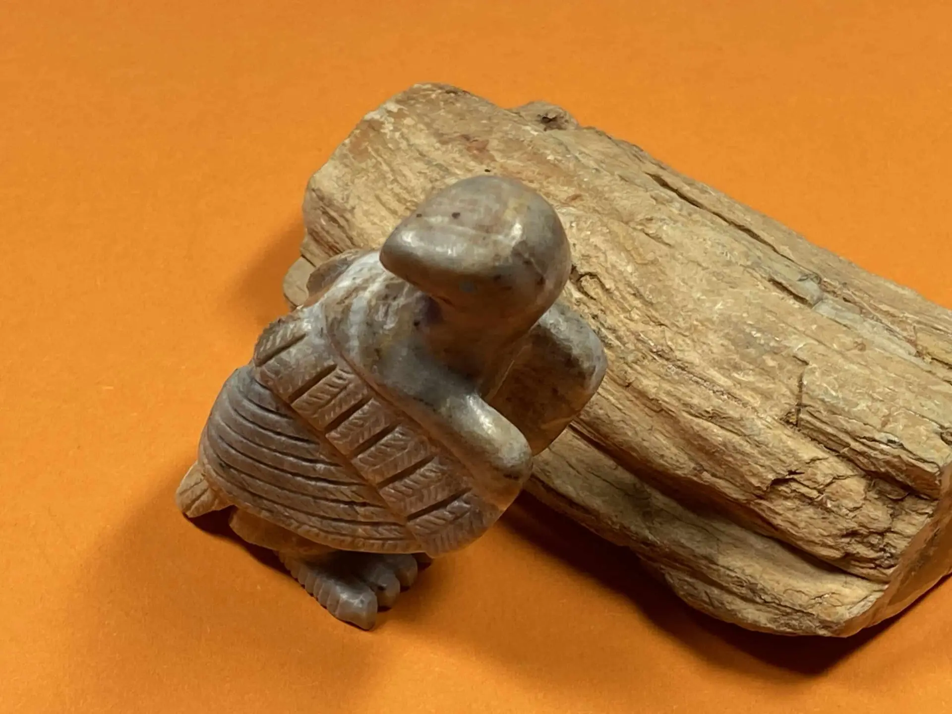 Die natürliche Maserung des Picasso Marble unterstreicht die handwerkliche Detailarbeit und verleiht der Figur eine lebendige Optik. Ein beeindruckendes Stück, das die Zuni-Kunst und ihre spirituelle Symbolik repräsentiert.